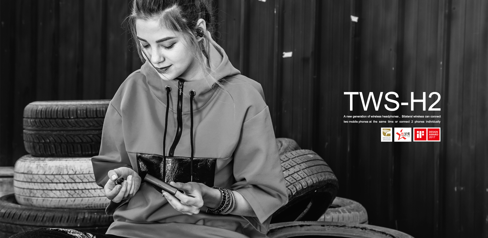 新一代无线TWS-H2耳机的创新式充电座+存储一体,吸住就自动待机,操作人性化,让您一天轻巧的享受美好的音乐,TWS-H2荣获2017德国iF设计大奖、台湾金点奖和中国红星奖。